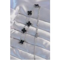 316L Çelik Gümüş Renk Siyah Mineli Yonca Kolye