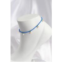 Buz Mavisi Renk Boncuklu Papatya Motifli Halhal