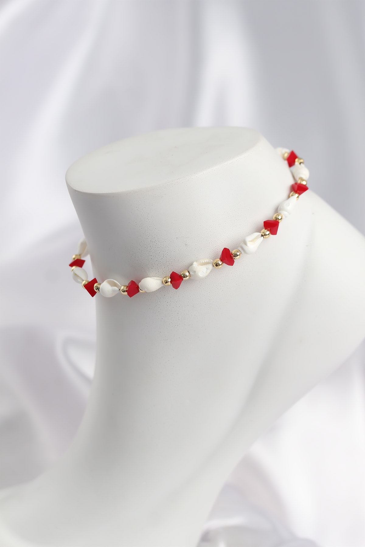 Doğal Deniz Kabuğu Model ve Kırmızı Kristal Taş Model Halhal
