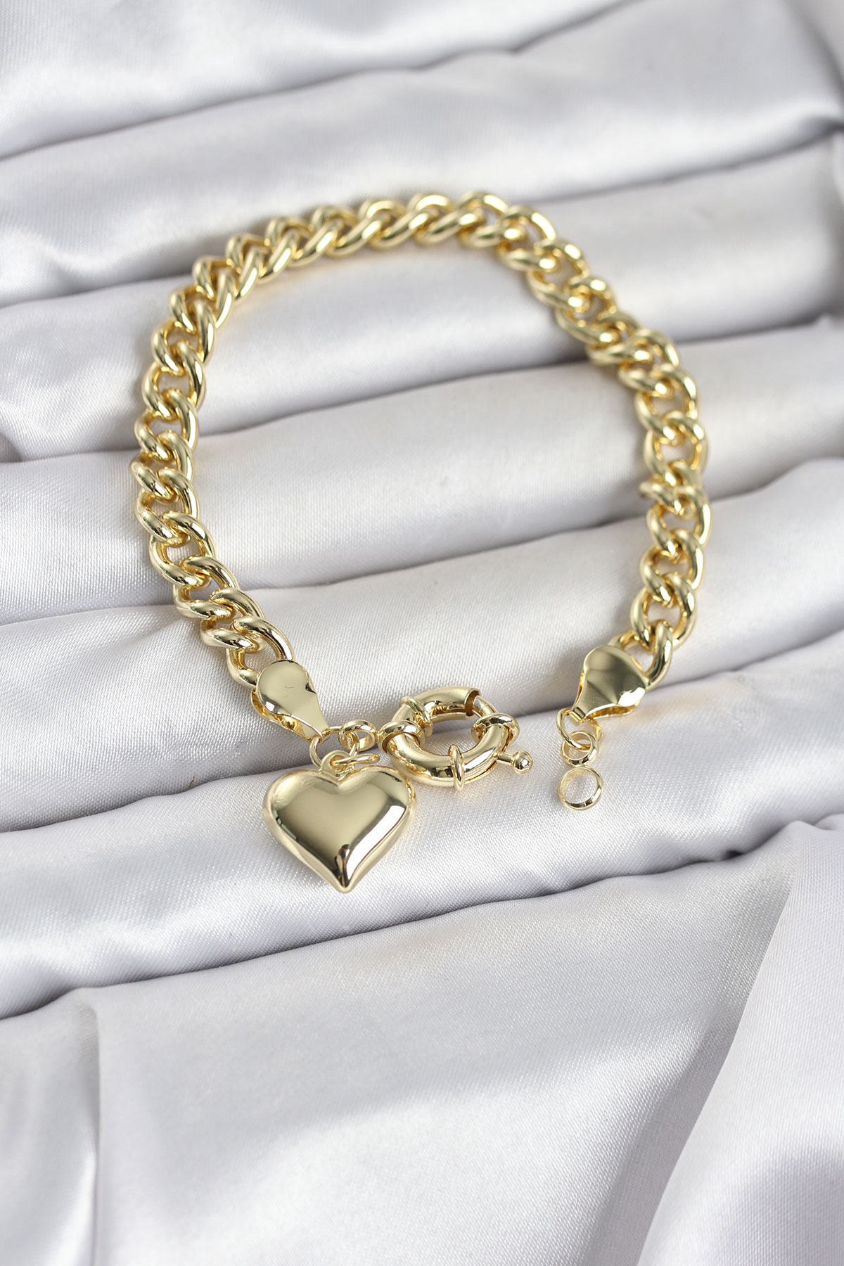 Kalp Detaylı Gold Renk Pirinç Kadın Bileklik