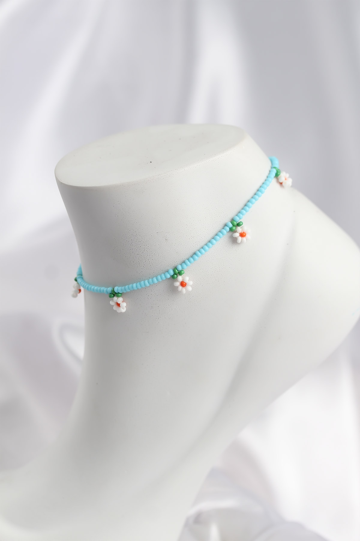 Ürün Özellikleri:Renk: Mavi ve beyaz papatya detaylıMalzeme: Boncuk ve ipAyarlanabilir uzunlukHafif ve rahat kullanımEl yapımı görünüm
