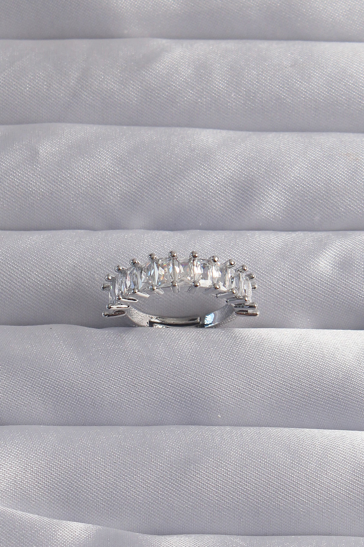 Pirinç Ayarlamalı Gümüş Renk Baget Taşlı Su Yolu Yüzük