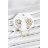 Pirinç Gold Renk Yıldız Model Zincir Bağlantılı Ear Cuff Küpe Seti