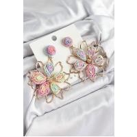 Pirinç Rainbow Çiçek Model Gold Renk Kadın Hasır Küpe