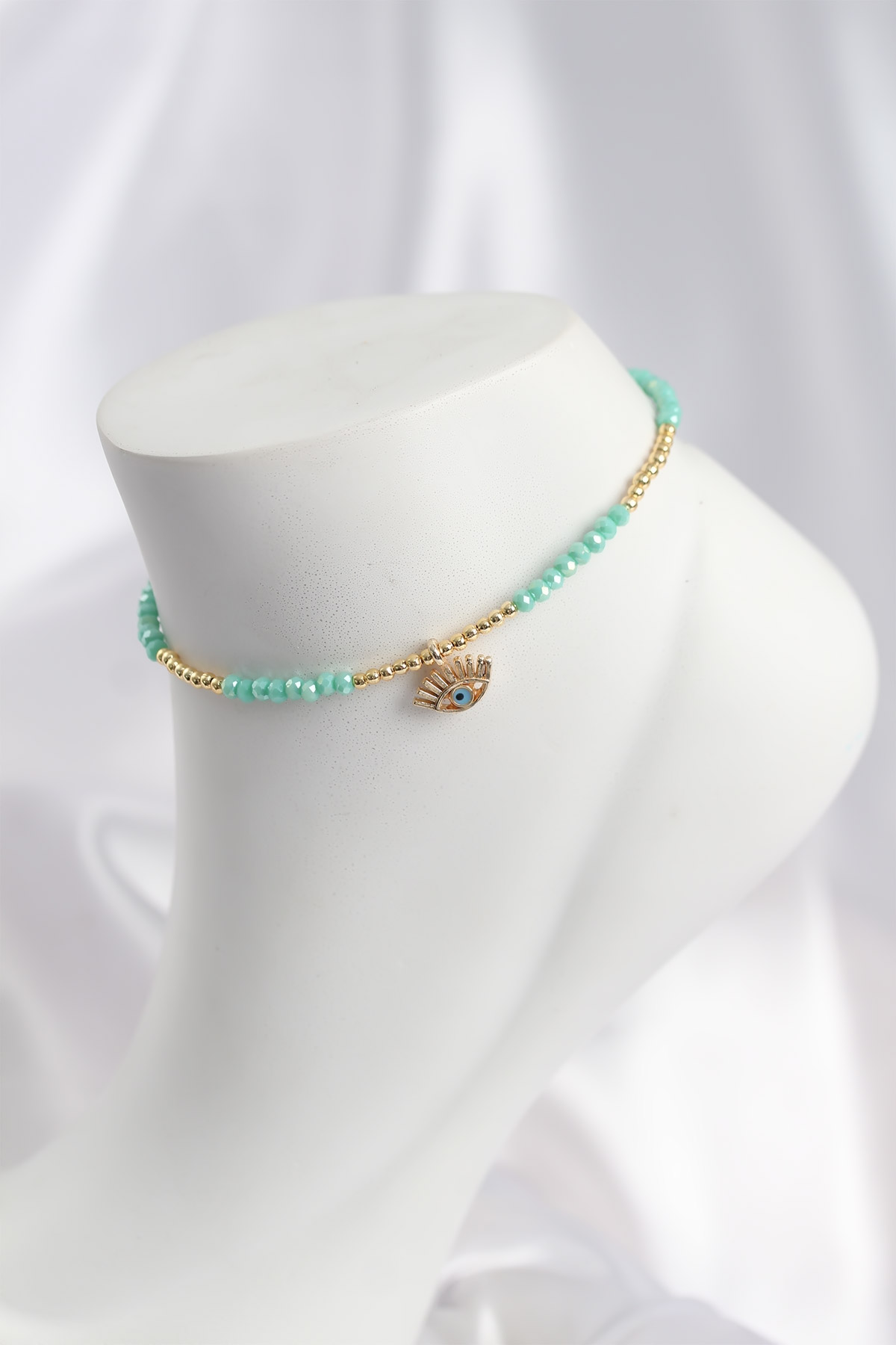 Su Yeşili Renk Boncuklu Nazarlı Göz Figürlü Halhal