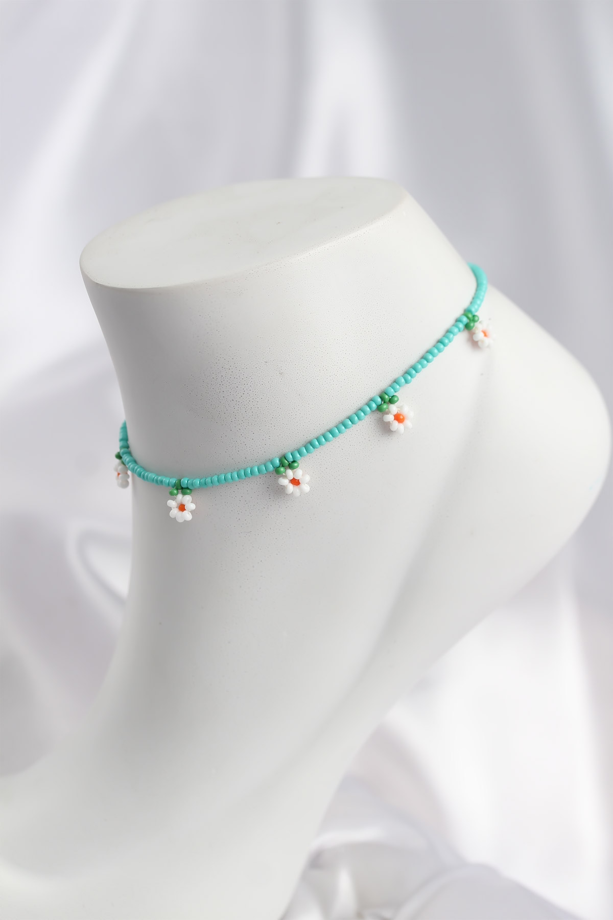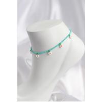 Turkuaz Renk Boncuklu Papatya Motifli Halhal