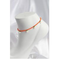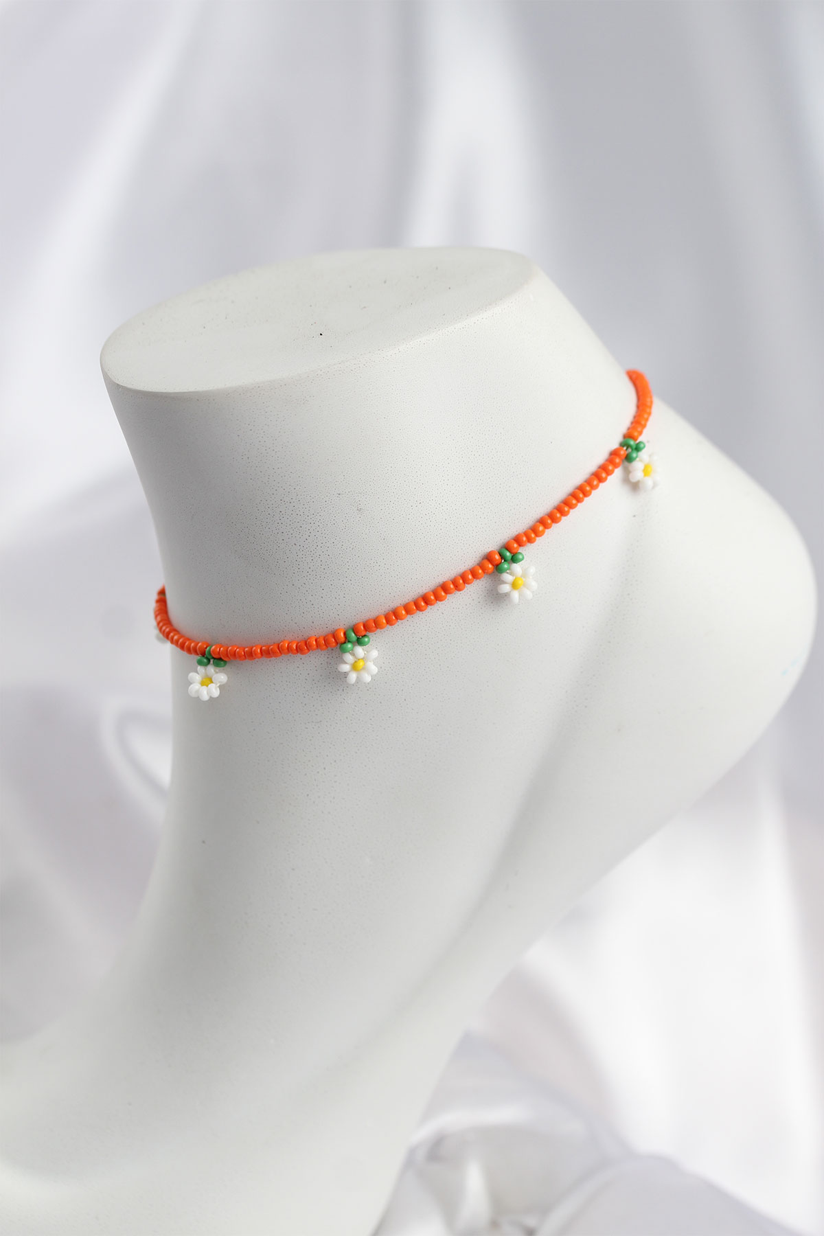 Turuncu Renk Boncuklu Papatya Motifli Halhal