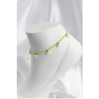Yeşil Renk Boncuklu Papatya Motifli Halhal